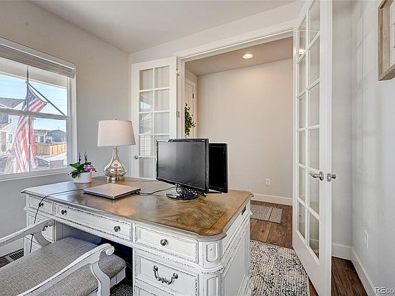 PRIME LOT located in the highly sought-after Terrain community. This upgraded home is situated with gorgeous open space at the back and along one side! Impeccable interior design is evident from the moment you enter the home with luxury vinyl floors, granite countertops, subway tile backsplash, and custom features throughout. Enjoy working from home in the office with French doors and an expansive window for plenty of light. The open floor plan is centered by a large kitchen island w/seating, stainless steel appliances, gas cooktop, double ovens, and 42” cabinets. The kitchen is open to the dining area which allows for an abundance of entertainment space. There is a large, covered deck with access from the Kitchen/Dining on the main level. The soaring living room height is impressive, paired with the large windows, which lets in natural light, complete with a gas fireplace and custom surround. Coming in from the garage, there is a custom drop zone to help organize your life. A half bath is located on this main level. As you move upstairs, you’ll find the primary suite which has beautiful views, plenty of light, and an ensuite bath. Complete with granite countertops, upgraded lighting, and a spacious walk-in closet. The upstairs has 2 additional bedrooms and a full bathroom. Conveniently located second-floor laundry has custom shelving. The unfinished walk-out basement offers plenty of flexibility and potential for your future needs. PET-FREE SMOKE-FREE. The backyard is professionally landscaped with several trees and a beautiful, paved patio. The Terrain community offers trails, a clubhouse with 2 pools and playgrounds, tennis courts, private dog park, as well as Wrangler Park located next to Sage Canyon Elementary. Come see all the Terrain has to offer!