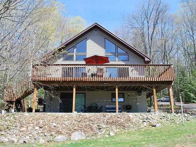 Located on picturesque and pristine 1026 acre Lake Lucerne, one of Northern Wisconsin's most highly sought after full recreational and fishing destinations you will find this 1800 square foot residence. The home features large windows and a wrap around deck (12x36 ft) overlooking the lake offering panoramic viewing and spectacular sunsets. Also, this 1.5 story home has an open concept design with 4 bedrooms, 1 full bathroom, tongue and groove cathedral ceilings and a loft. There is a full walkout basement that is unfinished, giving the new owners the opportunity to increase their living space. Outside lakeside is a 1.5 garage for a boat and additional storage and a 11x32 ft concrete patio. Schedule your appointment for your opportunity to own 150 feet of exclusive waterfront property on this crystal clear lake.