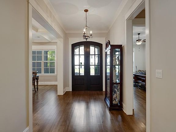 Beautiful 4BD/3.5BTH Custom Built home in The Grove at Lakeland. Spacious open floor plan with quality buillt custom features throughout. Tall smooth ceilings, gleaming hardwood floors, stunning kitchen w/breakfast nook, island, double ovens, gas cooktop, farm sink, custom cabinetry, built in storage & more. Master w/luxury bath down, 2bd bedroom down w/private bath, two bedrooms up with shared bath and huge bonus. Wonderful outdoor covered patio w/fireplace overlooking park-like setting.