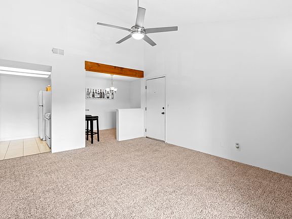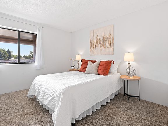 Don' t miss out on this beautifully updated 1 Bed, 1 Bath, top floor, end unit. New Carpet, new paint, completely remodeled bathroom, beautifully updated kitchen, and more! As you first walk in you are greeted by very tall vaulted ceilings in the living room with a wood burning fireplace, plus a dining room, and in unit laundry closet with front load washer and dryer included. Enjoy the covered deck with additional storage. This home is in a wonderful location right across the street from Centennial Park, and moments away from the South Platte River. If you are looking for a maintenance free home with easy access to the city, downtown Littleton, the RTD Light rail, the front range and so much more, this is the one for you!