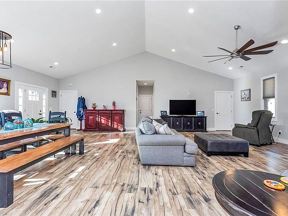 9.5 acres & 4 BR 4 1/2 Baths! This brick home is immaculate and its like NEW, built in 2019 and includes a 3 car garage! Open floor plan, vaulted ceilings and 10' ceilings throughout and ONE-LEVEL LIVING with 4 Bedrooms and 3 1/2 Bathrooms on the main level and an additional full bath in the basement Huge kitchen with island seating, farm sink, drop-in cooktop, double oven, dishwasher, refrigerator and pantry, and there's even plenty of room for a large dining table. So many gathering spaces to enjoy! Primary bathroom has soaking tub and custom shower with oversized walk-in closet. Additional finished living space in the basement provides another Great room, Home office space with closet and a Hobby room with closet. The finished basement also includes a safe room with fire wall and is rough-plumbed for a kitchenette. Additional unfinished basement space for storage. 12' x 32' Outbuilding has electricity.