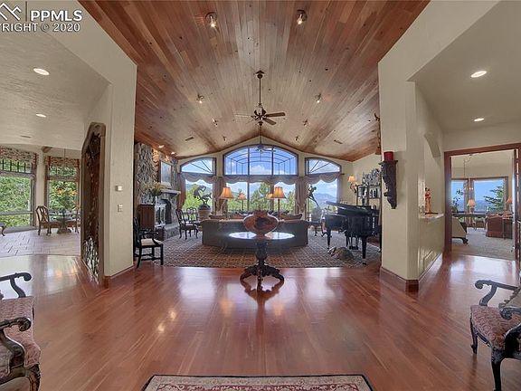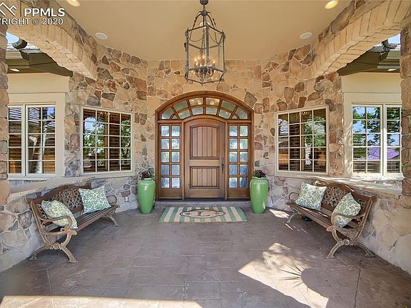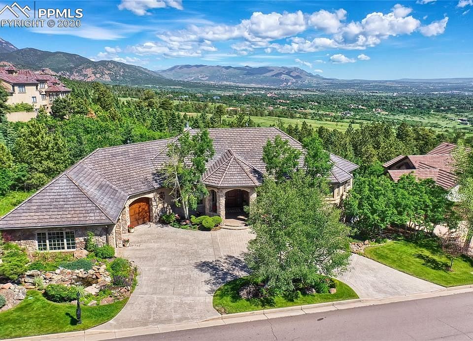 Exceptional design and finishes grace this stunningly beautiful Broadmoor Resort home. Breathtaking views capture the mountains and city to Kissing Camels and beyond. Warm, inviting entry and great room w/water wall opens to views and floor-to-ceiling stone fireplace. There is an abundant use of Custom Cherrywood, beamed ceilings, custom window treatments and art niches. Gourmet kitchen has top of the line appliances, fireplace-hearth room, solid-slab granite, butler's pantry w/dishwasher. Master bedroom captures stunning views, private patio with fire pit, fireplace, his (plumbed for laundry) and hers closets and a private art studio/exercise room w/ built-ins! Luxury abounds in 6-piece master bath with in floor radiant heat & 2-sided walk-in shower, Jacuzzi soaking tub, separate his and hers vanities with solid slab marble tops. French doors open to the main floor office w/built-ins. Octagon shaped dining room is full of warmth with a custom leaded glass-iron chandelier, iron gated entrance and beautiful custom window coverings. The cherry stairs w/custom iron railings take you to the walkout lower level where you will find a cozy library w/fireplace to read on cold winter nights. The grand theater is a masterpiece with raised seating and surround sound. A sunken wet bar /kitchen perfect for movie watching is fully equipped with refrigerator and dishwasher. A beautiful walk out game room walks out to lower level composite deck and hot tub. A complete home spa, enjoy the sauna/steam room and 3/4 bath ready for your guests' delight. There are 2 en-suite bedrooms, and a 4th bedroom currently used as an exercise room.New furnaces. New class 4 tile roof 2019..In wall speakers. Exterior has 2 water features and delightful gardens. Simply a masterpiece!