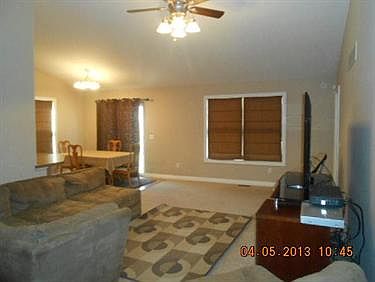 Spacious stick-built ranch style home with 2 car attached garage. Neutral decor, ceramic tile entry, laundry & baths, wood laminate flooring in kitchen/eating area, vaulted ceilings, brushed nickel fixtures, snack bar & pantry in kitchen,open floor plan, lot backs up to woods.