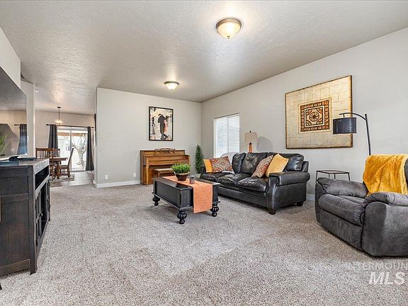 Don’t miss out on this spacious, well-kept home in Meridian! Located minutes from Lakeview golf course, this house is an entertainer's dream! Enjoy an open floor plan, two living rooms and a well maintained backyard. The kitchen has a breakfast bar, 4 gas burner stove, granite tile countertops, and a wine corner with a beverage/wine fridge and an ice machine. The house features a gas fireplace, less than a year old carpet, and new LVP flooring. The home is equipped to have a central vacuum system if you desire! Oversize master bedroom has a soaker and dual vanities. Don’t forget to check out this amazing backyard!! A beautiful stone path leads out to the unique wine feature and fire pit. The covered back patio has a one of a kind corrugated metal ceiling with programmable LED color changing lights. Multiple garden boxes with a drip system make gardening easy and fun! There are also two sheds for additional storage and a dog run in the backyard. There is a community park right around the corner.