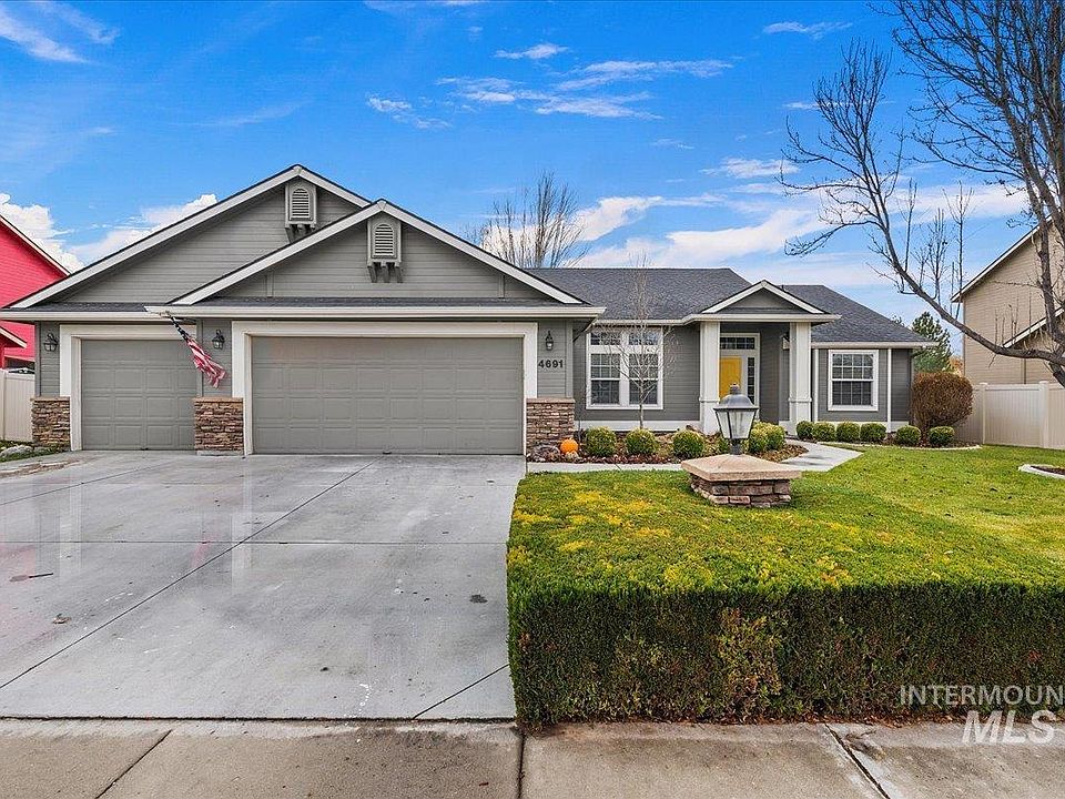 This great single-level, split-bedroom floor plan has plenty of space inside & is low maintenance outside! The kitchen features tile granite countertops, upgraded flooring & is open to the breakfast nook, dining room & living room. Large dual vanity & walk-in closet in the master bath. Ample 3-car garage, full auto irrigation. It's on a quiet street in an amazing Meridian location close to shopping & schools with a community park & walking paths. See it today!