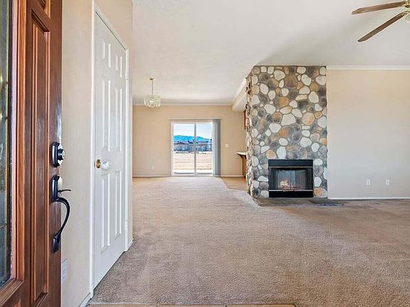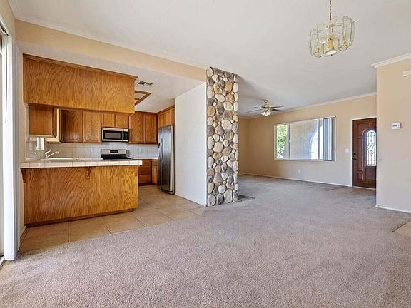 A beautiful desert oasis with spacious layout & stunning views! Welcome to this charming four-bedroom, two-bathroom desert home, thoughtfully designed with a split floor plan for added privacy and comfort. Step into a spacious living room filled with natural light, perfect for relaxing or entertaining. The massive backyard is a true desert retreat, complete with a covered patio--ideal for enjoying tranquil sunsets, stargazing under the desert sky, and soaking up the breathtaking sunrises. Located in a friendly, peaceful neighborhood just minutes from the Condor Gate for convenient military base access and only a 10-minute drive to the North Entrance of Joshua Tree National Park, this home is ideal for outdoor enthusiasts. Families will appreciate the proximity to schools, with Twentynine Palms Elementary just 1.3 miles away and Twentynine Palms Junior High and High School nearby. Local amenities, including the casino, are also within easy reach, offering both convenience and entertainment. Beautifully maintained, this home is ready to welcome its new owners to the serene desert lifestyle.