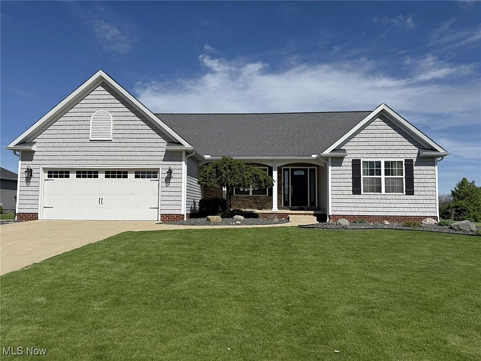 This stunning ranch home shows like a model home. Located on a dead-end street overlooking a lovely meadow & farmland. Vinyl siding w/shake & stone accents and a front porch are featured on the exterior. The Foyer has cherry wood flooring and a built-in desk area w/cabinet. The open floor plan has cathedral ceilings in main living area, ceiling fan and double window w/wood blinds. Dining area features cherry flooring and see-thru gas log fireplace w/stone surround. Sunroom has cathedral ceiling, see-thru gas log fireplace and windows on three sides with wood blinds. Kitchen has granite counters, island w/breakfast bar, pantry w/pull-out drawers, wrought iron chandelier & recessed lights. Appliances will remain. The primary bedroom offers crown molding, ceiling fan/light and pocket door to primary full bathroom. There is a large walk-in closet with washer & dryer (excluded) hook-up and linen closet. Primary bathroom features double vanity w/granite counters and two sinks, ceramic tile floor and walk-in ceramic tiled shower with a ceiling shower rain head and glass doors. Two additional bedrooms located on opposite side of home share a full bathroom. This bathroom has a soaking tub/shower combination, vanity, wood framed mirror & light bar, ceramic tile flooring & linen closet. The backyard has a concrete patio, shed (with water) and garden. There is a two-car attached garage that is heated, w/ceiling fan lights, second refrigerator & flooring finished by Fantastic Floors. Full basement is unfinished with tons of storage area, block windows, water softener & reverse osmosis system.