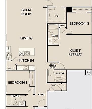 Come see our most popular floor plan, The Sunflower,at Amarillo Creek. This gorgeous Modern Exterior home boasts 2,219 sq ft of living space. The residence features 4 bedrooms, 3 bathrooms, and a 2.5 Car Garage, perfect for storage space. You'll love the convenience of the separate Guest Retreat with a living space, bedroom and full bathroom. The open kitchen is the centerpiece of the home, showcasing a center island with Carrara Breeze Quartz countertops, Fairview White 42'' Upper Cabinets with Gun Metal Pull cabinet hardware, with a Revalia Remix Calming White Mosaic backsplash, and stainless steel appliances, including a refrigerator and gas range. Step inside to find Vicinity Natural 6 x 36 Plank Tile floors at your feet and sleek Black hardware that bring a touch of sophistication to the space. and sleek stainless-steel appliances. Escape to your own oasis in the primary suite, where getting ready is a breeze with dual sinks, walk-in closet and a generously sized bedroom. This home feels bright and open thanks to the open concept layout, 9" ceilings and floor to floor 6 x 36 Vicinity Gray Brown plank tile throughout the main areas and Benton carpet in the bedrooms. Front yard landscaping is already included, ensuring a welcoming exterior to include a Double Gate. The Amarillo Creek Community boast multiple parks and activities, from Pickleball to Basketball, there's something for everyone. This is the opportunity you've been waiting for, a home and location for you, and you loved ones, to make memories.