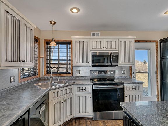 Updated 2 story with FINISHED basement in Waters Edge at Donovan Lake. Brand new flooring throughout the open concept main level. Huge pantry, custom lockers, laundry room, and half bath in mudroom area. 3 bedrooms and 2 bathrooms on upper level. Newly finished basement includes 4th bedroom and another full bathroom! Completely fenced in backyard plus no backyard neighbors!