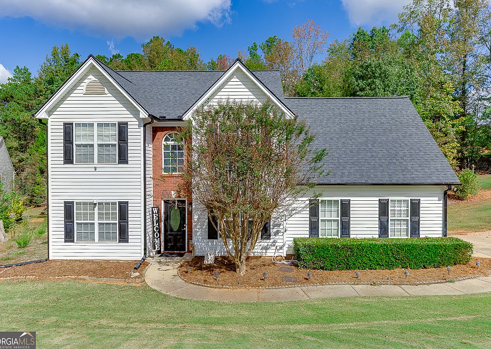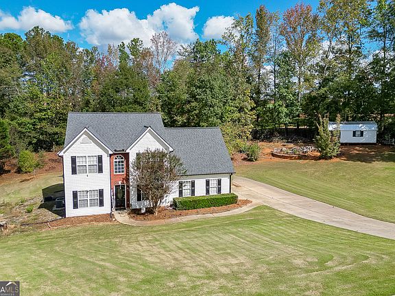 $10,000 Seller Concession Offered! This stunning home is situated on a spacious 1-acre double lot, nestled at the end of a peaceful cul-de-sac. A true entertainer's dream, the property boasts a fabulous deck pavilion, perfect for hosting parties or enjoying the big game. You'll also love the cozy firepit, plus a separate work building or "she shed" for all your hobbies or extra storage needs. Inside, the main level features a 2-story foyer, a dedicated office, a formal dining room, a convenient laundry room, and an eat-in kitchen that opens up to the light-filled living room. Upstairs, the spacious Master Suite offers his/her closets, dual vanities, and a separate tub and shower for ultimate relaxation. Three additional spacious bedrooms and a full bath complete the upper level. Location is key-just 10 minutes to schools, shopping, restaurants, and parks, with easy access to I-85 and I-985. Plus, you'll enjoy all the amenities that Weatherstone Park has to offer, including pickleball courts, a pool, playgrounds, and access to Duncan Lake for fishing, boating, and more! Don't miss out on this fantastic home-schedule your tour today!