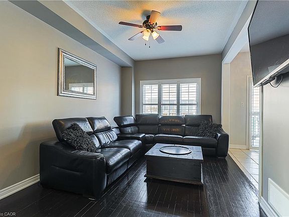 Welcome to this beautifully maintained 3-bedroom semi-detached home nestled on a quiet, family-friendly street in the heart of Alton Village.Built by Fernbrook Homes, this gem boasts 9-ft ceilings on the main floor, creating an airy and inviting atmosphere.Step into the cozy living room, perfect for relaxing evenings, and enjoy the open-concept kitchen with an eat-in area, ideal for family meals. Sliding doors lead to your low-maintenance backyard, featuring a composite deck that steps down to a professionally landscaped patio with paving stones and a dedicated planting area offering both charm and functionality. Upstairs, the spacious primary suite features a walk-in closet and a private 4 piece ensuite.Two additional generously sized bedrooms and a 4 piece bathroom complete the second floor. The unfinished basement provides endless possibilities with a roughed-in bathroom and a cold cellar, ready for your personal touch. Key Features include : Hardwood floors and California shutters throughout. Brick and Stone skirting for timeless curb appeal, Natural gas BBQ line for summer entertaining, inside garage access and garage door opener. Updates include: Furnace (2023) and Roof (2022). Located just steps from top-rated schools, parks, shopping and easy access to the 407, the home is truly in a prime location. Do not miss this incredible opportunity - schedule your showing today.