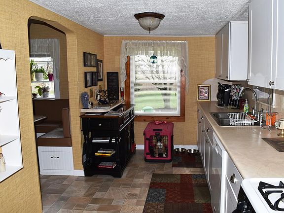 Full frt porch invites you into open flr plan. Liv Rm & Din Rm is being used as Great Rm. Dinette has built in booth w/table and shelving, kit w/pass thru to 3 Season Rm. Many recent improvements including: flooring, siding, insulation, windows, roof, furnace, well pump. Everdry Basement. 16 x 20 covered paver patio, 2+ car garage.