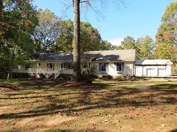 COUNTRY LIVING ! A. LONG DRIVEWAY THRU THE WOODS TAKES YOU TO THIS RANCH HOME WITH HUGE COVERED FRONT PORCH ON 3.7 ACRES OF BEAUTIFUL LAND. LARGE G.R. W/ WOOD FLOOR, COMPUTER NICHE, VAULTED CEILING & VIEW OF THE WOODED BACK. EAT-IN KITCHEN W BAY WINDOW. INCREDIBLE MASTER BATH RENOVATION W/ HUGE W-I CLOSET. THE GARAGE WAS ENCLOSED & HAS A WINDOW UNIT FOR HEAT/AIR, MAKES A PERFECT HOBBY/SEWING ROOM W/ LOTS OF OUTLETS & NICE VIEW FROM THE WALL OF WINDOWS. COVERED BACK PORCH. DETACHED 3 BAY GARAGE PLUS A LARGE STORAGE BUILDING WITH A GARAGE DOOR AND ATTACHED COVERED VEHICLE PORT FOR BOAT OR CAMPER OR TRAILER OR TRUCK. ABSOLUTELY BEAUTIFUL LAND. BRAND NEW PROFESSIONAL PAINT JOB INSIDE AND BRAND NEW NEUTRAL CARPET....
