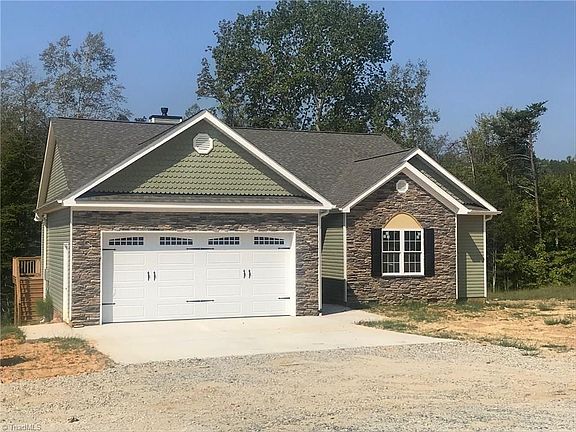 Custom built home sitting on 5 acres, 2 car garage & storage/workshop area. Place an offer now & pick your own countertops and flooring! Enclosed sun room directly off main living area adds space for entertaining or peaceful, relaxing moments overlooking secluded backyard. Garden Tub in MBR, large walk in closets, stone fireplace w/ large mantle, custom trim/mill work throughout the home including tray ceilings in DR & MBR. Convenient to GSO & Burlington. Truly a work of art. $250/Fee yearly for driveway