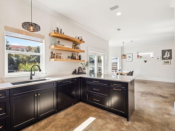This stunning 4-bedroom Mediterranean-style residence, built in 2021, is a seamless blend of luxury, comfort, and modern elegance. Nestled within a gated lakefront community just minutes from Destin's premier beaches, shopping, and dining, the home features polished concrete floors on the main level, durable LVP upstairs, and a chef's kitchen outfitted with custom cabinetry, quartz and granite countertops, and premium appliances. The light-filled open layout flows effortlessly into a private courtyard and expansive lakefront sun deck--perfect for relaxed outdoor living and entertaining. Upstairs, a versatile second living area offers the perfect space for a media room, home office, or cozy retreat. Dual laundry roomsincluding one tucked inside the primary suite's walk-in closetadd exceptional functionality. Built with durability in mind, the home features Zip System sheathing, hard coat stucco, and is pre-plumbed for a generator. A two-zone HVAC system ensures optimal comfort throughout the seasons, while a spacious two-car garage offers ample storage. Designed with enduring materials and refined finishes, this Calusa Bay residence pairs resilience with style, creating a serene and sophisticated lakefront sanctuary.