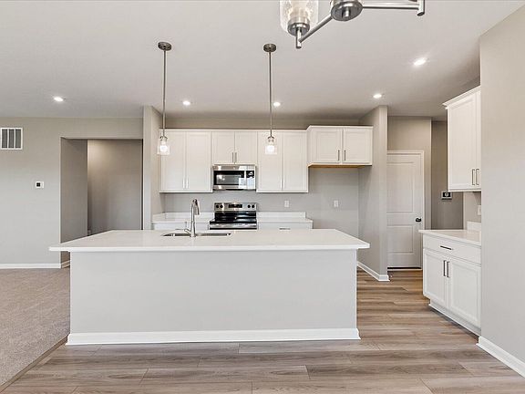 Upgraded multi-height cabinetryExtra large family roomDurable quartz countersPeninsula kitchenStainless steel appliancesOpen concept designCathedral ceiling