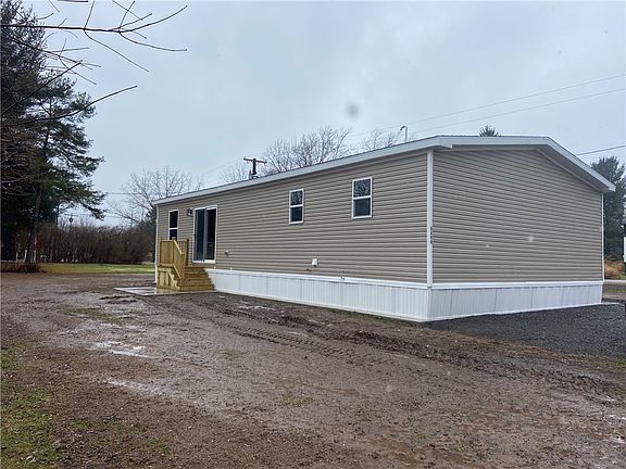 BRAND NEW 1344 sq ft manufactured/modular RANCH home on its' own land! NO LOT RENT! Situated on an oversized concrete pad, large gravel driveway & level yard! OPEN FLOOR PLAN 3 bedroom, 2 full bath w/LVP flooring throughout! Primary suite has lighted walk in closet! Primary bath offers double sink vanity & large soaking tub! Eat in kitchen w/breakfast bar & ample cupboard space! ALL kitchen appliances included! Space for pantry shelving & 'coffee counter' w/decorative shelves! EASY ACCESS laundry/utility room! Whole house ventilation fan! Ducted for central AC. Newly installed septic system & public water!