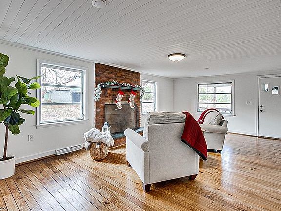 Wonderful farm house with original pine floors, tongue and grove ceilings. Complete new bathroom and an amazing finished kitchen with new granite countertops. There is a laundry area that could be converted to a second bathroom, or 4th bedroom. Two door cinderblock garage with a workshop in the back. Tin roof, view of pond from the kitchen windows. Private and so nice with a great porch and huge fireplace to enjoy in the winter.