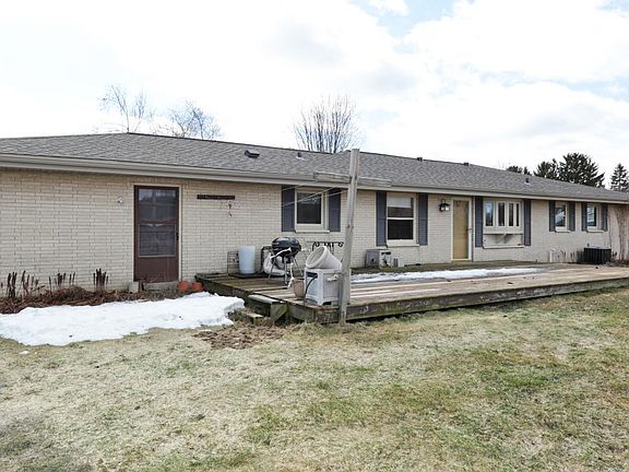 Your Home on the Range with this ranch property! FIVE acres of land to roam and 3 out buildings. Approximately 20 X 50 building that could house 4+ Cars and an attached, approximately 20 x 20 lounge/rec-room with a hot tub and 1/2 bathroom. The horse barn has 5 stalls. This all BRICK ranch home offers three bedrooms and two bathrooms and a basement ready for your ideas. Some of the features include: hardwood floors, ceramic tile floor, built in china cabinet, walk in closet, first floor laundry room, solar tubes that bring in plenty of light, master bathroom and more. Bring your decorating ideas! Opportunity is knocking!