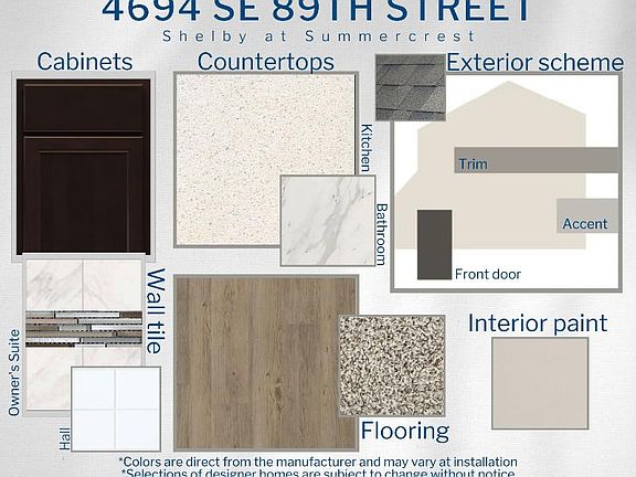 Brand-new 4-bedroom home for sale in Ocala, Florida, situated on a 0.27-acre homesite.A homeowner favorite, the spacious Shelby provides you with a welcoming,open living areaincluding a spacious gathering room, sunny dining café, and kitchen with acounter-height island.Relax in yourluxurious owner's suitecomplete with anelegant tray ceiling, awalk-in wardrobe, and anen-suite bathincluding a decorative tiled shower with glass enclosure, dual vanities, a linen closet, and a closeted toilet.Plus enjoy youroutdoor living spaceon yourcovered lanai!This home includesfeatures and finishes hand-selected by our professionaldesignersto provide you withenduring style, move-in convenience, and easy home maintenance: Open kitchen with: 36-in. Espresso shaker-style cabinets with a 6' bumpout over the microwaveand decorative knobs/pulls. Silestone quartz countertops with a flat edge finish. Single-bowlstainless steel sink with a pull-down faucet. Walk-in pantry with tight-mesh shelving. . Samsung stainless steel appliances: 5-burner smooth-top electric range with wi-fi smart controls. Fingerprint-resistant microwave with a ventilation system. ENERGY STAR® quiet-operation dishwasher. ENERGY STAR® large capacity side-by-side refrigerator. . Luxurious, low-maintenance wood vinyl plank flooring throughout the living area,laundry room, and bathrooms. Mohawk stain-resistant carpet in the bedrooms. Custom-fit 2-in.faux woodwindow blin