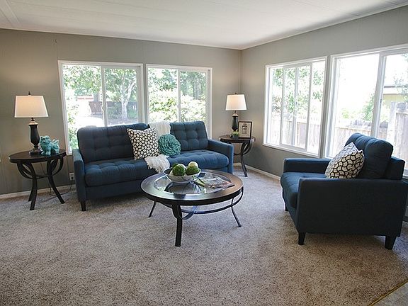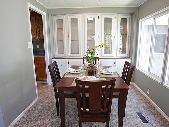 This will go fast! Freshly updated manufactured home, move in ready. Two bedrooms including master suite with 2 closets. New carpet, fixtures and water heater. New roof! Fresh paint, new kitchen appliances and updated baths. Bonus space off the main home is great for home office, studio, guest room. Breezeway to big, 2 car garage with attached workshop area. Nicely landscaped yard, shed, quiet street near shopping and schools.