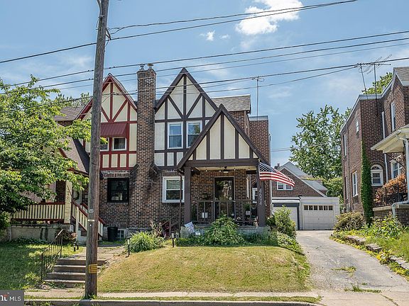 This adorable Tutor Twin awaits your visit, with updated Flooring, a newer Bright White Kitchen, and an updated Bathroom. From the Front Porch, you enter the front door to the open Floor Plan that is very today. The layout takes you to the Living Room with a ceiling fan, Dining Area, and Breakfast Nook that is open to the Kitchen. You have built-in Custom Cabinetry with a Glass front in the Breakfast Nook. The Kitchen has white Cabinetry with new butcher-top Countertops, Newer Stainless-Steel Appliances, and Special Light Fixture. From the Kitchen, there is access to the Rear Porch, Rear fenced Yard, and Detached 1 car Garage. The second floor features the Main Bedroom with a ceiling fan, 2nd Bedroom with built-in shelving and a ceiling fan, and 3rd Bedroom with some built-in shelving. There is a lovely updated Hall Bathroom. Entering the Basement, you will find your get-a-way with a custom entertainment area. It includes a fairly new, 65′′ Samsung Q-LED Smart well-equipped TV, a 5.1 Stereo surround sound powered by a Yamaha receiver, and in wall and ceiling Polk/JBL speakers for an amazing Sound System (approx.$4000.) There are 14-recessed Multi-colored, Programmable smart lights to transform the area into a nightclub-like Party Room or Gathering Room. You will not believe the 50” electric Fireplace built flush to the wall! The Kitchenette area consists of a Built-in Sink and Custom Cabinets, a Butcher Block Countertop, a small free-standing Stainless refrigerator for snacks and drinks, and a microwave. There is a Bilco door exiting to the rear yard. Also installed is a new vinyl waterproof plank flooring to complete the area. Over the Basement sink there is a sizable new custom window. Also, a private Laundry Room with some storage., and a Utility Area to complete the Basement. A wonderful location for public transportation, shopping centers, close proximity to City Line Ave and Philadelphia.