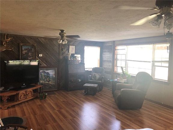 3 ponds, 155 acres runs 70 cows, produces 390 round bales, Fenced & cross fenced, hay barn 40x60, old milk barn 20x30, storage building, 2 bed, 1 bath. Screened in porch, oak cabinets, Island in kitchen, corral panels, propane tank & cattle feeders do not convey.