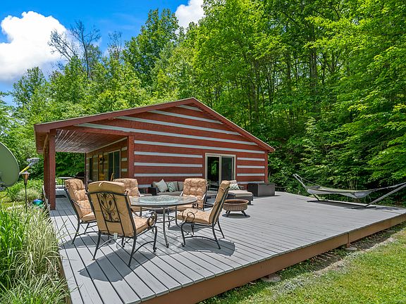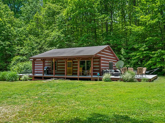 Rich in Brown County history, this hidden oasis is the perfect getaway! Situated in the valley at the end of the road this 10+ ac parcel nestles between two wooded ridges with a creek running thru. Three sides border Yellowwood St Forest w/trail access right from the property. Other nearby points of interest include Hoosier Nat. Forest, BCSP, Crooked Creek Lake and Lake Monroe. The adorable 1 BR cabin has all the modern conveniences and comes furnished. There's a covered front porch and huge deck wrapping all the way around where you'll want to spend most of your time. There's an old barn of little value other than it's charm (use caution if entering). Meets the distance requirements for potential tourist home zoning subject to approval