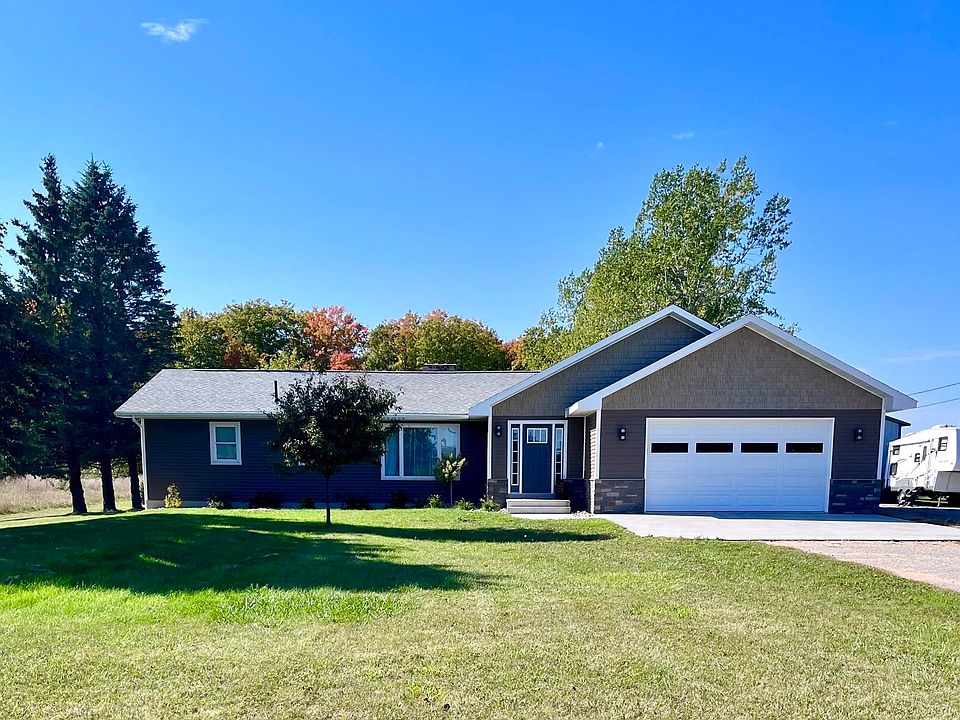 Just what you've been waiting for- Modern ranch home with 3 bedrooms, 2.5 baths, main floor laundry, and full basement. Many updates including new kitchen, quartz countertops, appliances, flooring, and keyless entry. Roof was replaced 2 years ago. Open concept with a great layout, master on one end and two bedrooms on the opposite end. Home features an extra spacious master suite, tiled shower, and a massive walk-in closet. Landscaped yard, cement patio, and attached 2 car garage. PLUS a fully finished 30x42 pole barn. The home is perfectly nestled on 1.4 acres. Spectrum internet. This property has it all! Located only 10 minutes from Escanaba.