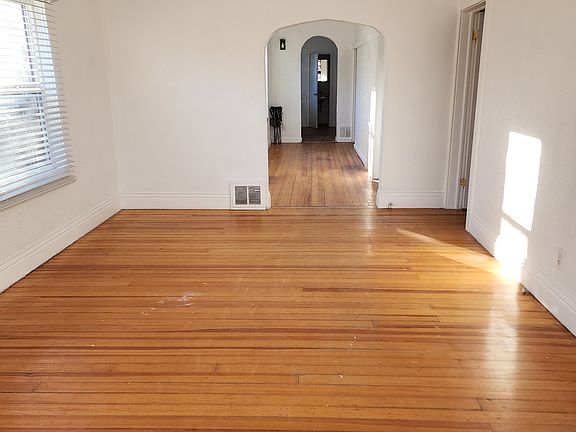 Bright and sunny 3 bedroom/2 bath house on a corner lot with amazing porch and attached garage. Bonus room in basement that can be used as an office or play area. Beautiful hard wood floors, ceiling fans in bedrooms and kitchen, fresh paint throughout, and new counter tops. Large eat in kitchen. Plenty of storage including built ins. Washer and dryer hookups, and a large fenced yard. The house is centrally located, close to downtown, 1-70 and 1-25, Rhino, and on a bus line! Available now! 1 year lease, 1st, last, deposit. Please call or message for a showing. Renter pays all utilities. No Smoking.