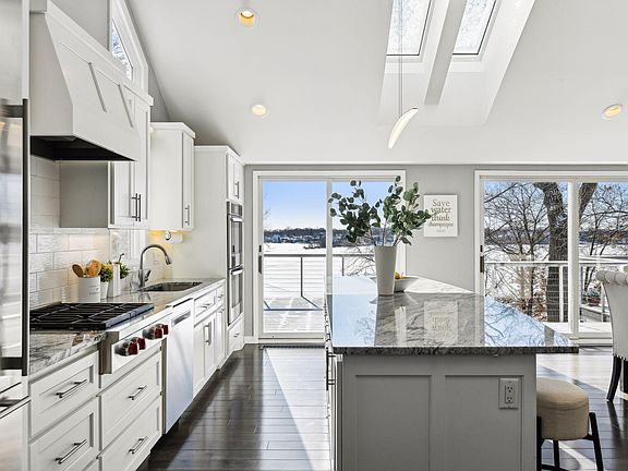 Step back in and see what’s new! This beautifully updated home on picturesque Jennings Bay was refreshed in January 2025 with new flooring and cabinetry, inviting you to truly experience the charm of Lake Minnetonka living. Once a quaint 500 SF cabin, this home has been meticulously expanded and renovated into a nearly 4,000 SF striking industrial-modern retreat. The main floor’s open-concept layout is an entertainer’s dream, with a fully renovated kitchen boasting premium appliances: a Sub-Zero refrigerator, Wolf range, Bosch dishwasher, and double wall oven. Skylights and expansive windows flood the space with natural light, creating a warm, inviting atmosphere. The upper level primary suite was updated in 2022, featuring a spacious walk-in closet, a spa-like en-suite bathroom, and a private terrace with sweeping southerly views. The walkout lower level is equally impressive, featuring a theater room, bar, ¾ bath, and ample storage space alongside a dedicated laundry area —perfect for hosting guests or creating a cozy family space. Cozy in-floor heating adds a luxurious touch throughout the home, while the oversized two-car garage offers plenty of space for vehicles and lake toys. Step outside to an oversized, maintenance-free deck that spans the entire south side of the home. Stairs lead down to your private sand beach and a boathouse with a rooftop seating area—perfect for soaking in the stunning surroundings. The lake offers a firm, sandy walkout, ideal for swimming and fishing. Located in sought-after Orono, MN, just 25 minutes from downtown Minneapolis, this home offers the ultimate balance of convenience and lakeside tranquility. Plus, Orono Open Enrollment and Westonka School Bus service is conveniently nearby. This is more than a home—it’s a lifestyle. Don’t miss your chance to own this lakeside gem!