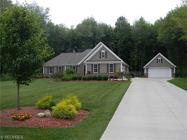 What you've been looking for is Here! This Beauty offers over 2000 sq ft of Quality and Style, and Condition, and offers something for everyone. The open Floor plan Starts with the Kitchen, with Maple Cabinets, and Center Island, Granite Countertops, with Sink Dishwasher, and Breakfast Bar. The Cabinets, have pull out drawers, and Pantry, plus all Appliances Stay! Great room has a Stone F/P Cathedral ceilings, and Hardwood Flooring. The Sun room leads onto the covered deck with ceiling fan. The spacious Master Bedroom with features Tray ceilng, full Master Bath with Stand up shower, Tub, and a Walk-in Closet. Two more Spacious Bedrooms with Double closets. Full basement offers poured and 200amp elect service, newer High eff gas furnace and central a/c. Plus a 2 car attached garage, and a 2 car detached garage. Full concrete drive with turn around. This property is very private! Landscaped to Perfection! Just move In!