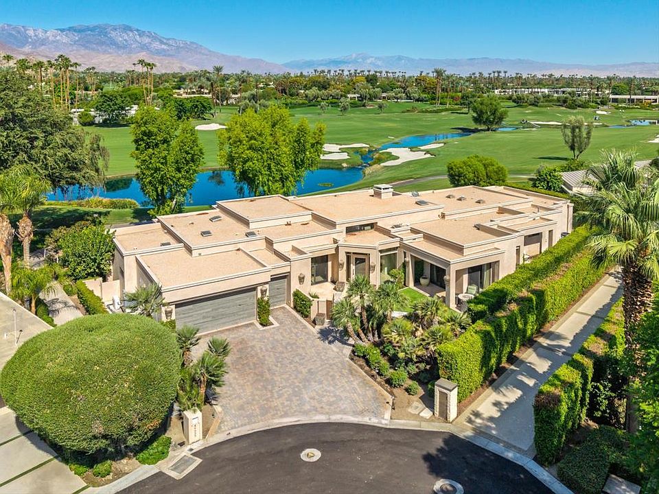 Discover your dream home nestled in a golfer's paradise! This stunning property, built in 2007, boasts an impressive 5,452 sq. ft. of exquisite living space on a generous 16,988 sq. ft. lot, perfectly positioned on the picturesque 18th fairway of the Eldorado Country Club. As you arrive you are greeted by the sound of a tranquil fountain in the entry courtyard, surrounded by the dramatic Santa Rosa foothills. This setting of this home embodies sophistication, serenity, functionality, and luxury.Step into the heart of this home - a gourmet kitchen designed for both culinary enthusiasts and entertaining connoisseurs. Adorned with custom cabinetry and luxurious Taj Mahal Quartzite countertops, this space features top-of-the-line Dacor appliances, including a 6-burner gas cooktop, dual ovens, and two Miele dishwashers, encouraging effortless meal preparation and entertaining. The kitchen also includes two SubZero refrigerator doors with four freezer drawers, a double stainless steel sink, an additional island sink, and a walk-in pantry - a perfect blend of style and function. Custom Fleetwood disappearing pocket doors bring the outside in from the family room area with jaw dropping views of Mount San Jacinto over manicured fairways. The formal living room, characterized by a stunning wood beam ceiling, exudes sophistication with its inviting cut limestone fireplace and Fleetwood disappearing sliding doors that seamlessly integrate indoor and outdoor living. Venetian plaster walls elegantly showcase throughout this home, providing an opulent backdrop for gatherings and celebrations. A chic, well-appointed wet bar with a wine refrigerator and ice maker make entertaining simple. This remarkable home features a total of five beautifully appointed bedrooms, each providing a unique oasis for relaxation. The master suite offers breathtaking views of the San Jacinto mountains and fairway, complete with an extravagant en-suite bathroom featuring glistening abalone tile walls, double sinks, a spacious walk-in shower, a sumptuous soaking tub, and generous walk-in closet & storage. Each guest bedroom comes with its own en-suite bathroom, adorned with travertine counters and showers, ensuring maximum comfort and privacy for family and guests. Noteworthy are the serene views from the North Guest Bedroom and South Guest Bedroom, with picturesque panoramas of the golf course.