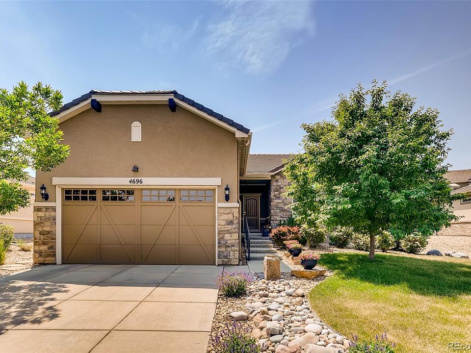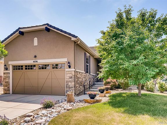 Come see this remodeled well maintained Arapahoe Model home in the coveted Anthem Ranch 55+ community. All new kitchen appliances, Samsung black stainless steel/smudge, New washer/dryer/utility tub, New extended hardwood floors, New Hunter-Douglas plantation shutters throughout the home, Entire house freshly painted, including ceiling and closets and New ceiling fan in living room. New light fixture in kitchen and exhaust fan, New 5-piece patio set included, Professionally deep-cleaned including power washing, vacuuming of all air vents, windows/screens washed, kitchen/bathroom cabinets degreased and wood treated. 2 bedroom, 2 bath plus office, open floor plan with upgraded kitchen island, eat in breakfast bar, separating dining room with glass doors to deck, and mature, landscaped backyard. Located on a quiet street with a private feeling backyard and ample space between the homes. No pets in the home, new carpet in 2020, and newly installed smoke and co detectors. Master has a large walk in closet, bay window and tray ceiling. Additionally added back stone patio, retractable electric awning and custom front railing. Fully textured and painted garage and painted foundation. Dry bed and French drain protection in the back area and chase drain in the front of the home. Professionally landscaped front yard and home maintained on a yearly basis for furnace, a/c and tree maintenance. 30,000 square foot recreation center, over 100 clubs and over 48 miles of trails around the neighborhood. Close to shopping, medical, DIA, E-470, Lafayette, Erie, Boulder, Westminster and Denver. Dont miss this wonderfully kept home.