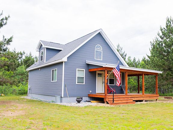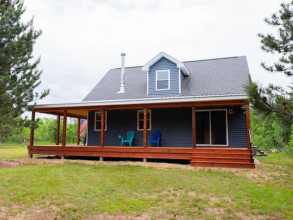Brand new 2024 build on 6.34 acres with no HOA, located on a private road for ultimate peace and privacy. This turnkey home features a stunning wrap-around covered porch perfect for relaxing or entertaining. Enjoy quiet country living with plenty of room for outdoor fun—ideal for ATVs, snowmobiles, and more!