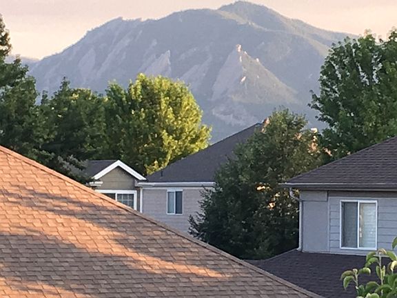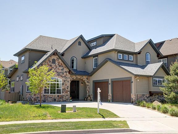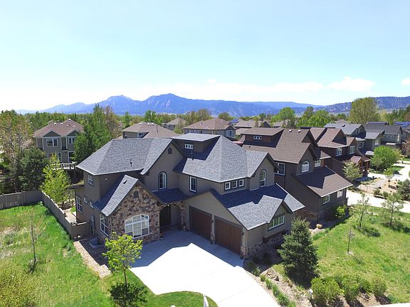 Stylish Euro Country design 3 story home boasting of flatirons views from skyloft deck. Open floor plan with beautiful quality throughout. Kitchen has 42in cabinetry with crown molding, granite countertops island with breakfast bar. 2 rear patios and 2 decks. Min floor bdrm/study has access to 3/4 bath. Awesome master suite with Dbl sided fireplace, south facing deck, huge walk-in closet and luxurious 5 piece bath. 3rd floor skyloft has wet bar & deck, Could be study. Basement has rec rm, familyrm, bdrm and bath.