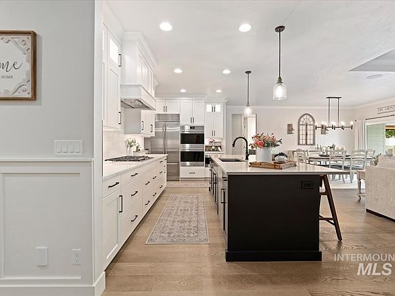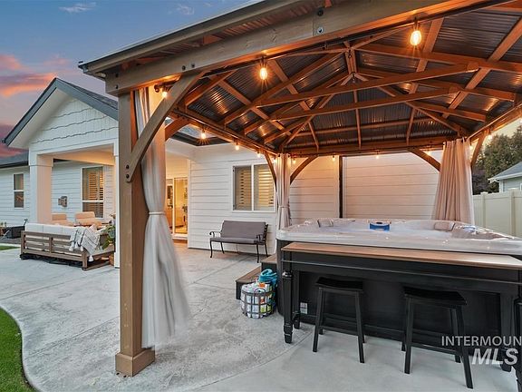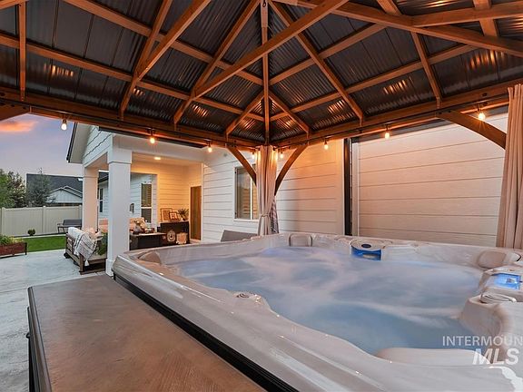 One-of-a-kind 2,793 sq. ft. turnkey modern farmhouse by Todd Campbell, featuring luxury finishes and $56,000 in additional upgrades. The open split-bedroom floor plan offers 4 bedrooms and 3 baths, including a flexible front room that works perfectly as an office or bedroom, and an upstairs suite that is a perfect bonus room or 4th bedroom with its own ensuite. The chef’s kitchen showcases a Sub-Zero refrigerator, Wolf appliances, brand-new quartz countertops, freshly painted cabinets, marble backsplash, and custom light fixtures, added plantation shutters throughout and spacious great room with views of the east-facing backyard. Outside is a beautifully landscaped yard with a pergola, extended concrete patio, and a brand-new Cal Spas hot tub. Additional enhancements include epoxy-coated garage floors, custom garage cabinets, yard curbing, and a new lean-to shed on the side for extra storage. Has a 3-car garage, quiet cul-de-sac, and convenient access to Meridian’s top schools, health clinics, and shops.