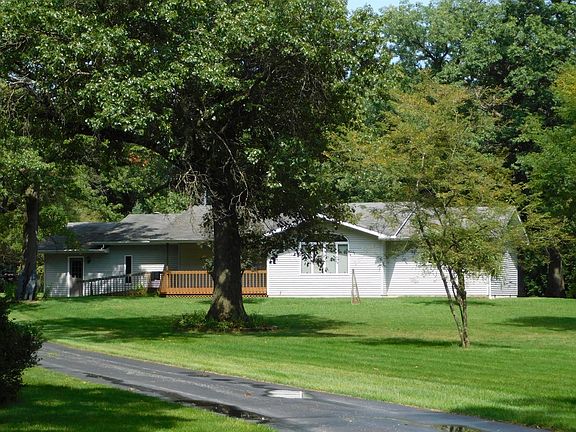 X marks the spot! Almost 4 Acres, privately hidden and set back 500 ft. from the road. Paved drive leads you back to your own little piece of country paradise with plenty of woods and winding trails throughout. This hilltop ranch is handicap accessible with front entry ramp and large, open rooms including 4 ft. wide Master Door for easy wheelchair entry. Attached 2 car, heated Garage with access to Basement. Ideal for storage or a clean slate for added space. Zoned Village Residential which could included business use. Call County for more information. A treasure map of discovery is awaiting you! Come explore this property today. Immediate possession!