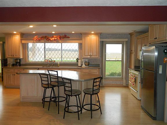 Attention country lovers! Over 6 acres of land with 2 large pole buildings and private pond with fountain outside. Uniquely designed home with 4 bedrooms, 3 fireplaces and a usable unfinished basement complete with giant wet bar and stove. Family room and living room on main level with a rec/play room upstairs and closet/storage space galore! Custom kitchen with breakfast bar, brand new carpet, newer R/O and well and oversized 2-car garage with carport.