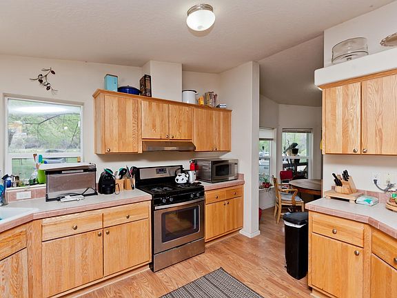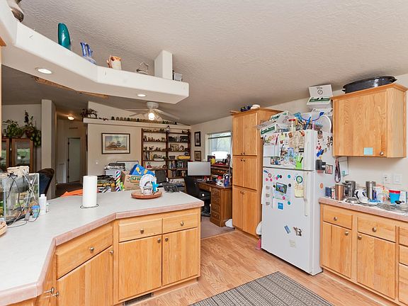 Rustic, home with an open concept floor plan that includes 3 bedroom, 2 bath. Kitchen has plenty of cabinet space and includes refrigerator and gas range. Laundry room has outside access which makes a great mud room. Front covered deck to sit and watch the wildlife. Situated on 15 irrigated acres with plenty of possibilities. Several out-buildings and storage container. Pastures are fenced and planted in grass/alfalfa. Private location with easy access and no close neighbors.