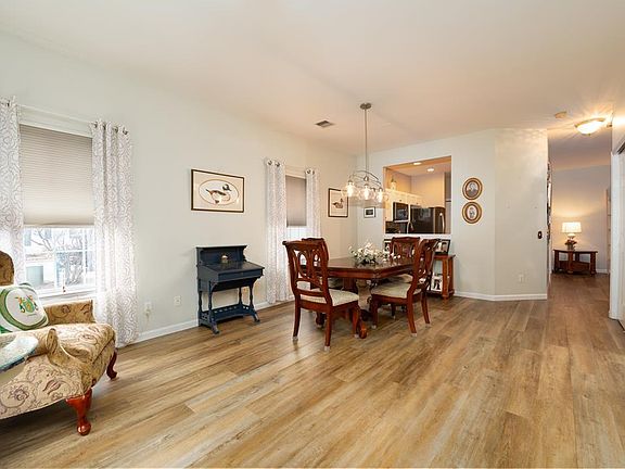 This 2-bedroom, 2.5-bath home sits at the end of the driveway and features a 2-car garage. Inside, you'll find new LVP flooring throughout the first floor. The living room opens to a back patio, a perfect spot to unwind. A dining area with a serving hatch connects to the kitchen, which offers granite countertops, a pantry, and modern chrome-finished appliances.