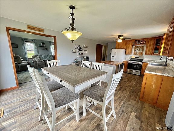 Wonderful 1.98 A Country setting for this well-maintained, vinyl sided Cape, set off road for privacy! New laminate flooring throughout entire home! Kitchen features refinished wooden cabinets, new laminate counters, tile backsplash, new center island with wood top & appliances! Nice large, bright dining area with sliding glass doors to side yard AND very spacious living room! 1st flr master bedroom & completely new bath (2021) with wood-look tile floor & tub walls, white vanity & linen closet! Attractive entrance hallway from breezeway with shiplap mixed woods! Open staircase & loft area leads to 2 generous sized upper bedrooms! Brand new 77ft well with softener 9/2020 ($15,000+)! New propane furnace 2021 & tons of basement storage! Attached 2012 built 3-4 car garage with 2 front & 1 rear overhead doors PLUS sliding glass doors to rear yard! All insulated & heated with newer wood stove! Overhead attic storage approx. 7ft tall x 12 ft wide & complete garage length! Gutters installed 2020. Two Anderson kitchen windows & seller has replaced all others with vinyl! Please state BGRS, LLC as the seller in offers, Thank you! OPEN Sat April 9th 1-3! Offers due Tues April 12th @5 pm. 2022-06-07