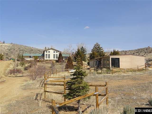 Horse property with panoramic view of Washoe Valley, lake and the Sierras. 4Br + 4 Ba + 2car gar. 3 Bedrooms located on main floor, including Master Br. have separate entrances and bathrooms - suitable for in-law quarters or guest rooms. Master Br. cabinets inlayed with cedar wood. Large kitchen with maple cabinets. Spacious loft. New roof in 2009 with R60/R40 insulation. Horse barn with 2 stalls and a large tack/workshop room + corral. Home has been remodeled and enlarged in 2010. Very private.