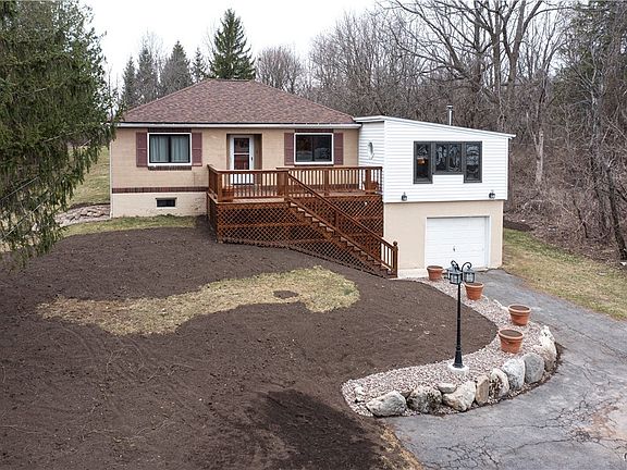 Beautiful 2 acre property with a gorgeous, private backyard boasting pear, cherry trees, a garden, and a perfect place for a fire pit. The main floor consists of 2 bedrooms, an updated bathroom and a spacious open living area with kitchen, breakfast bar, dining area and family room. The lower level has recently been remodeled with a bedroom & new egress window, new full bathroom, wonderful laundry room, and a larger area perfect for an office/gym/recreation room. Updated mechanicals, New 4 year old roof, tankless hot water heater, natural gas and pubic water. Wonderful location, minutes to Upstate Community Hospital, OCC, and the Onondaga Free Library.