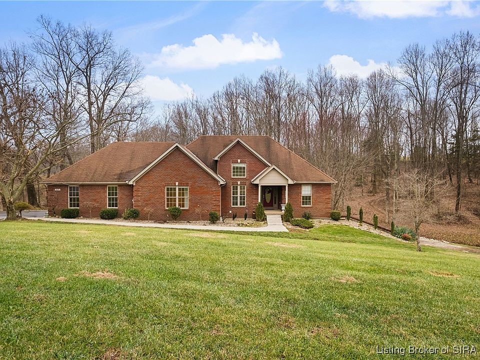 Welcome to this custom built, one owner home in desirable Floyds Knobs! Step into this home to notice soaring and vaulted ceilings upon entry with beautiful trim work throughout. The property is poised on one acre, which offers privacy and beautiful views. With a formal dining room and eat-in kitchen, there is ample room for entertaining, while a fireplace in the living room creates a cozy atmosphere. The kitchen offers quartz countertops. This property has 5 total bedrooms (one non-conforming) and 3 full bathrooms. There is plenty of room for storage, hobbies, or flex spaces with a 2 car attached garage, utility garage, and large basement. Make this home your own, schedule your VIP showing today! Agent is related to seller.