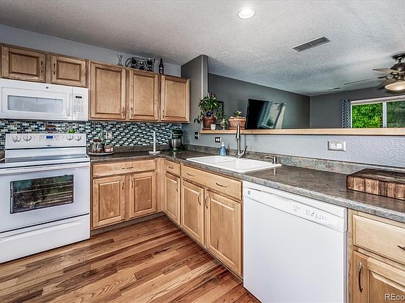 Views, views, views! Backs up to an open space meadow with panoramic view of the mountain that offer one-of-a-kind sunsets off the private trex deck. Completely remodeled, open floor plan, light and bright with an abundance of natural light, and large rooms. Main floor offers an open concept with hardwood floors throughout, large family room just off of a dining area and eat in kitchen that has updated cabinets, large walk-in pantry, custom tile backsplash and includes all appliances. Rare main floor ½ bath. Second floor has newer carpet, 2 large secondary bedrooms, full bath, and master suite with views of the mountains. Master includes walk in closet and master bathroom on-suite. Central air, all new windows and window coverings (honey-comb up and down blinds), new concrete driveway, updated plumbing and electrical fixtures, professionally landscaped, with large yard, sprinkler, close to everything including neighborhood parks and trails, schools, shopping, restaurants, golf courses, etc. Easy access to the mountains from either HWY 285 or C-470 plus much more.