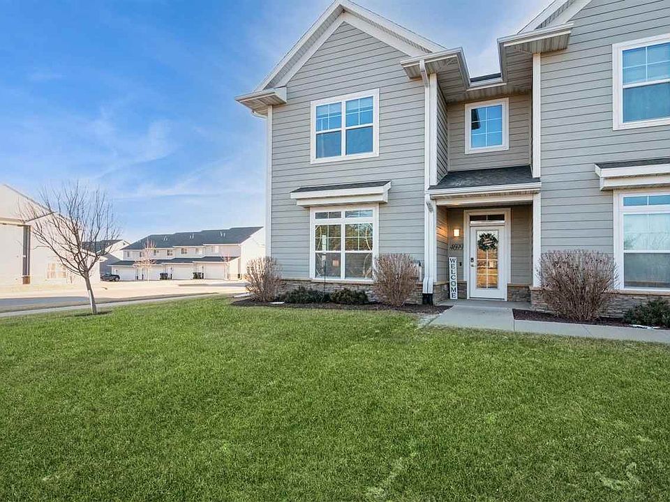 Contemporary End-Unit Townhome with a Peaceful Countryside Feel located just minutes from downtown Iowa City! This like new spacious townhome features 3 spacious bedrooms, 2.5 baths, and an open-concept design with 9’ ceilings, allowing for an abundance of natural light. The main level boasts beautiful wood-look LVP flooring throughout, a cozy gas fireplace, and a modern kitchen equipped with granite countertops, a large breakfast bar, soft-close drawers, modern slate appliances (including a newer dishwasher from 2022), an large undermount sink with an updated faucet, and a walk-in pantry for ample storage. The oversized two-stall garage connects to a spacious mudroom with built-in lockers and a convenient half bath. Upstairs, the large primary suite impresses with tray ceilings, a spacious en-suite bath with dual sinks, a large tiled shower with a glass door, and a walk-in closet filled with natural light. The large laundry room is conveniently located between all bedrooms. This high-end lightly lived in contemporary townhome offers a fresh style, comfort, and great value—schedule your showing today!