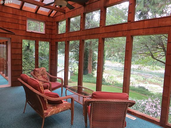 This may be the most beautiful view and access to the Umpqua River! House is well built and beautiful with slate kitchen floors and laminate in living room. Master bedroom has soaking tub/shower, private glass patio with hot tub, river view. Home has glass sun porch with incredible river view. Basement is full length of home with windows and doors. Tall RV garage 40'x16'. River irrigation, easy access to swim, fish or go boating.