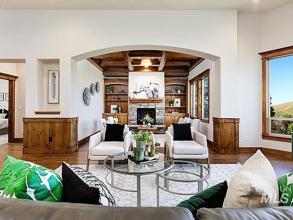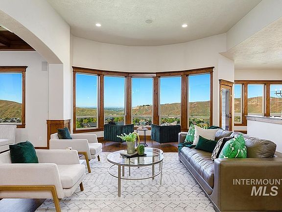 Extraordinary views abound from this 1-acre estate, atop North Boise's premier Arrowhead Ridge. An exquisite custom residence and independent casita with fine Craftsman architecture complement Idaho’s natural elegance. The home seamlessly blends into the surroundings of rolling foothills to the north and dazzling city light views to the south. Quality craftsmanship is carried throughout the grand residence. Rich alder wood, stone accents, and warm colors mimic the surrounding nature seen through scores of view windows. Newly refinished wood floors expand throughout the main gathering areas creating an effortless flow for entertaining. An impressive wall of curved windows brings-in spectacular sights spanning from the downtown skyline, over 'Hillside to Hollow" trails, and to Quail Hollow Golf Course. An exquisite hearth room sets the stage for indoor leisure, crowned by a magnificent coffered ceiling & warmed by a robust stone fireplace. Ground level casita provides a luxurious separate quarters for guests.