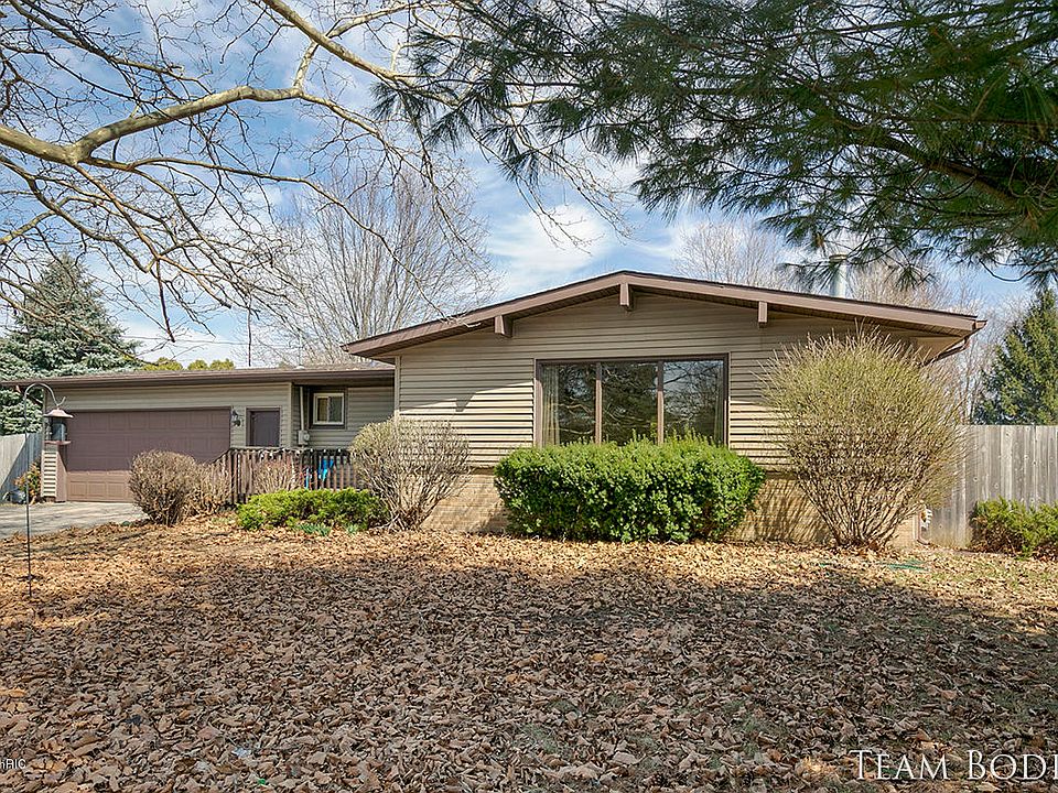 Kenowa Hills Ranch Large lot 3 bedroom 1+ bath 2 stall garage, Central air, Living Room with Fireplace Cathedral ceiling,sliders to a deck ,remodeled Kitchen,DA Rec Room, storage room with Hot tub room. New Furnace, Hot Water Heater and Central Air, new wood floors and tile kitchen